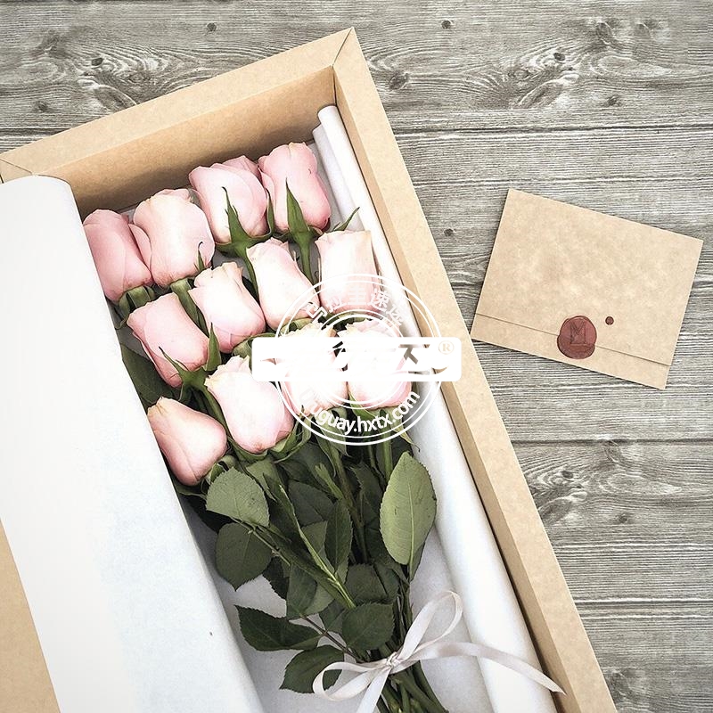 描述: 12枝粉玫瑰、长方型礼盒装。