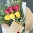 描述: 红色、黄色玫瑰6枝、配时令绿叶组成。